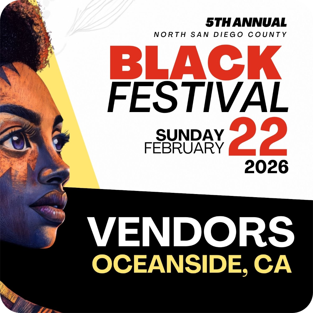 Join us as a vendor for the 5th Annual North San Diego County Black Festival on February 22, in Oceanside, CA.
